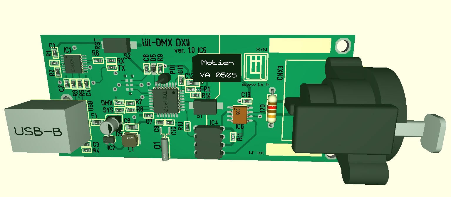 Le Pico DMX est contrôleur DMX 512 canaux pour ordinateur PC sous windows. Le produit est en cours de dévellopement.